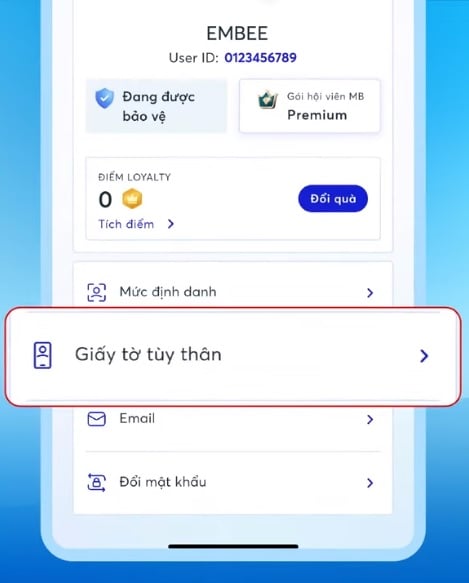 Bước 2: chọn tính năng “Giấy tờ tùy thân”